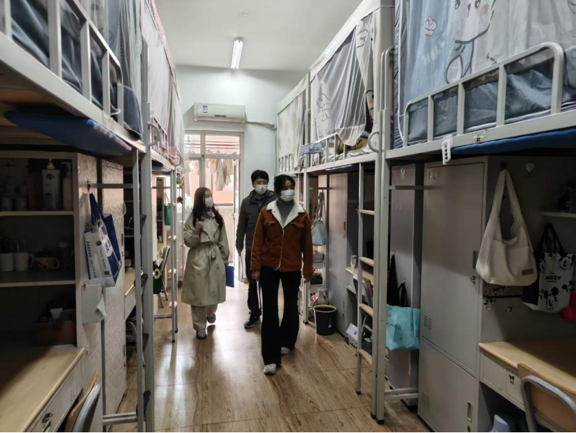 检查过程中,美术与设计学院党总支部书记高建宇带领辅导员们严格落实工作要求,当场纠正发现的问题,同时记录相关情况,便于后续的整改。从检查结果来看,学院学生普遍能够自觉遵守校园规范,对检查中发现的细节优化点,也及时配合做出调整。