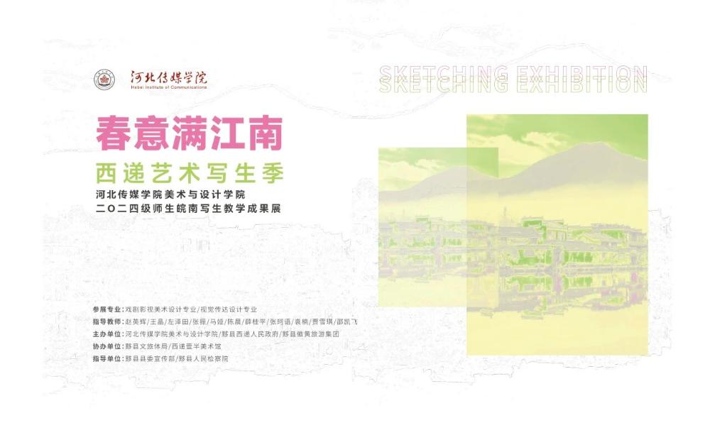 本次展览由河北传媒学院美术与设计学院基础教研室主任赵英辉策划展览,此次展览是2024级视觉传达设计专业、戏剧影视美术设计专业师生外出风景写生课程实践的优秀师生作品汇报展。在基础教研室11名教师的带领下,视觉传达设计、戏剧影视美术设计等2个专业,共300余名师生奔赴皖南写生基地开展了为期两周的外出实践教学课程,相聚在这座被时光镌刻的千年古村落,共同开启“春意满江南·西递艺术写生季”的华美篇章,见证河北传媒学院美术与设计学院2024级师生皖南写生教学成果的璀璨绽放!白墙黛瓦间流淌的是江南的烟雨,青石巷陌中跃动的是艺术的灵光。从燕赵大地的书声琅琅,到皖南山水的笔墨纵横,我们的师生以脚步丈量徽州文脉,以画笔对话天地诗情。同学们走出画室,以新的视角真实地发现与记录;走出课堂,深入社会生活,通过实地写生、考察,认识社会,了解人民的需要,完成了知识积累和文化沉淀的过程,更给艺术创作带来新的碰撞和思考,更好地践行学院“立德树人、以美为媒”的优良传统。