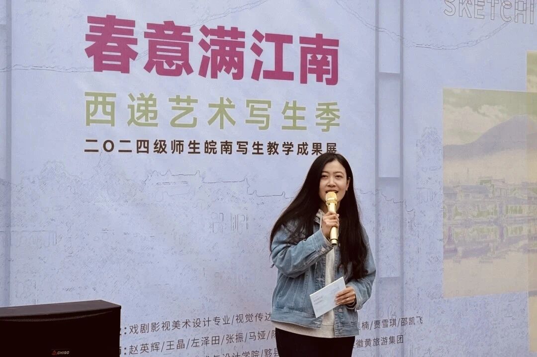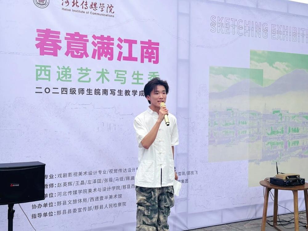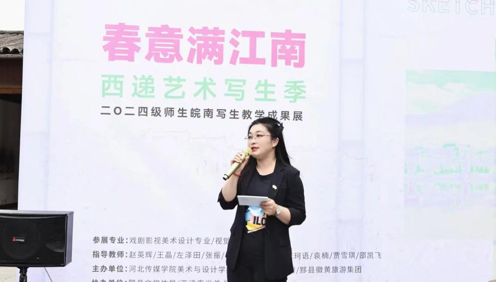 四月的西递,春水碧于天,画船听雨眠。2025年4月17日,春意满江南•西递艺术写生季——河北传媒学院美术与设计学院2024级师生皖南写生教学成果展在安徽省黄山市黟县西递壹半美术馆开幕。黟县西递人民政府镇长许跃、河北传媒学院美术与设计学院基础教研室副主任王晶、徽黄旅游集团西递旅游公司总经理章社利,基础教研室教师马娅、薛桂平、陈晨、张珂语、袁楠、邵凯飞及2024级视觉传达设计本科1-7班学生参加了此次展览开幕式,开幕式由基础教研室教师陈晨主持。