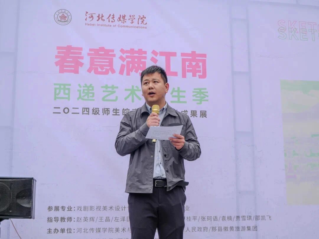 黟县西递人民政府许跃镇长就乡村振兴与艺术赋能做了开幕致辞,对我院师生的作品进行了积极肯定,对促进当地经济发展与文化宣传所作出的贡献表示感谢。