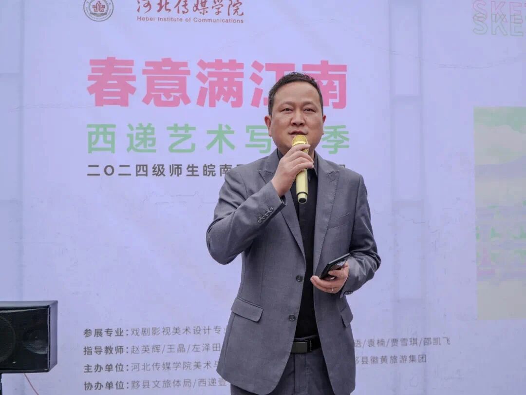 河北传媒学院美术与设计学院基础教研室王晶副主任在致辞中代表河北传媒学院美术与设计学院感谢当天莅临画展现场的各位领导、老师和同学们。感谢黟县西递人民政府、黟县徽黄旅游集团等单位的鼎力支持。我院每年春季会开展写生实践教学,依托我校产教融合实习实训基地的资源开展实践教学。此次展览是对2024级师生实践教学成果的一次集中展示。同学们的作品凝聚着心血和汗水,当然也离不开老师们的引领和悉心指导。