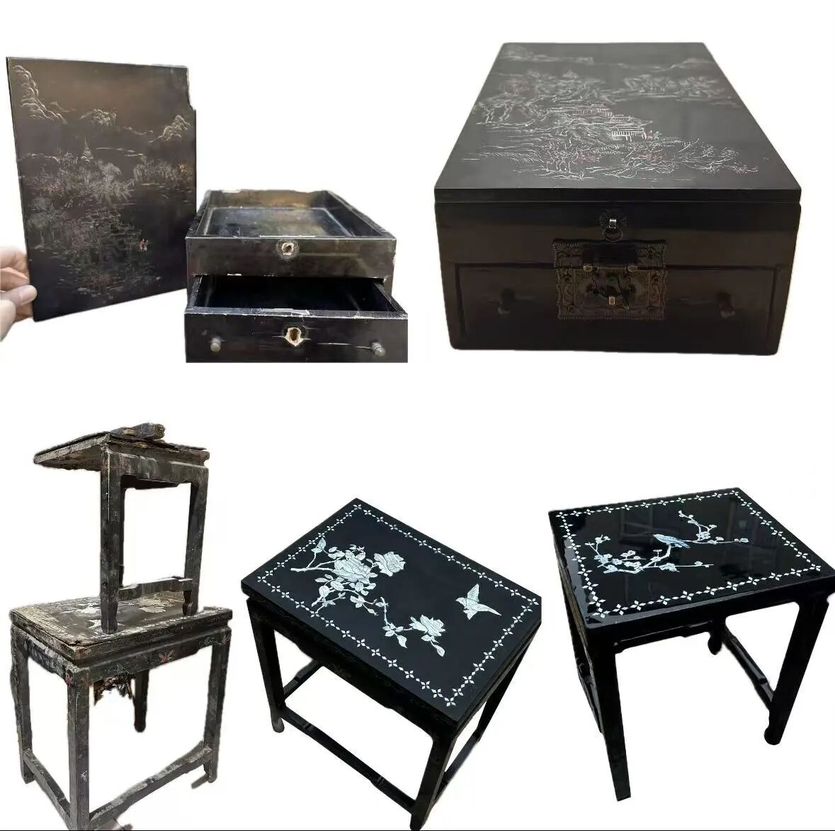民国黑漆螺钿家具及黑漆描银梳妆盒修复