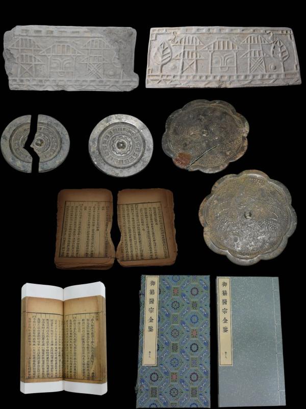 汉画像砖、昭明镜,唐葵花镜及清古籍修复