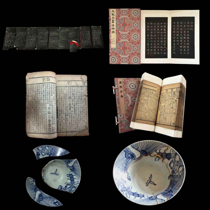 清《洛神赋》拓片、《康熙字典》与青花碗修复