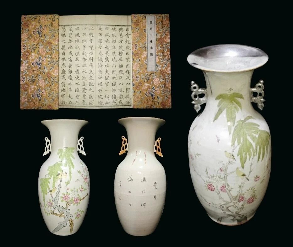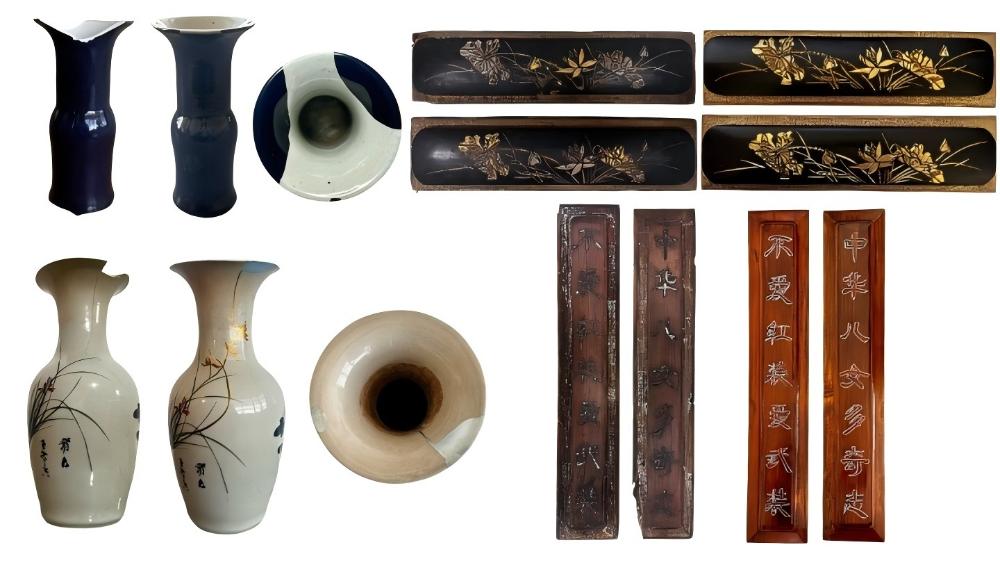 清蓝釉花觚、民国牡丹纹瓶及近现代木板修复