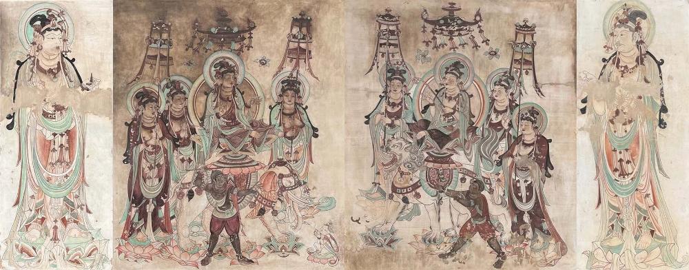 毗卢寺壁画帝释天主等众、引路王菩萨摹制