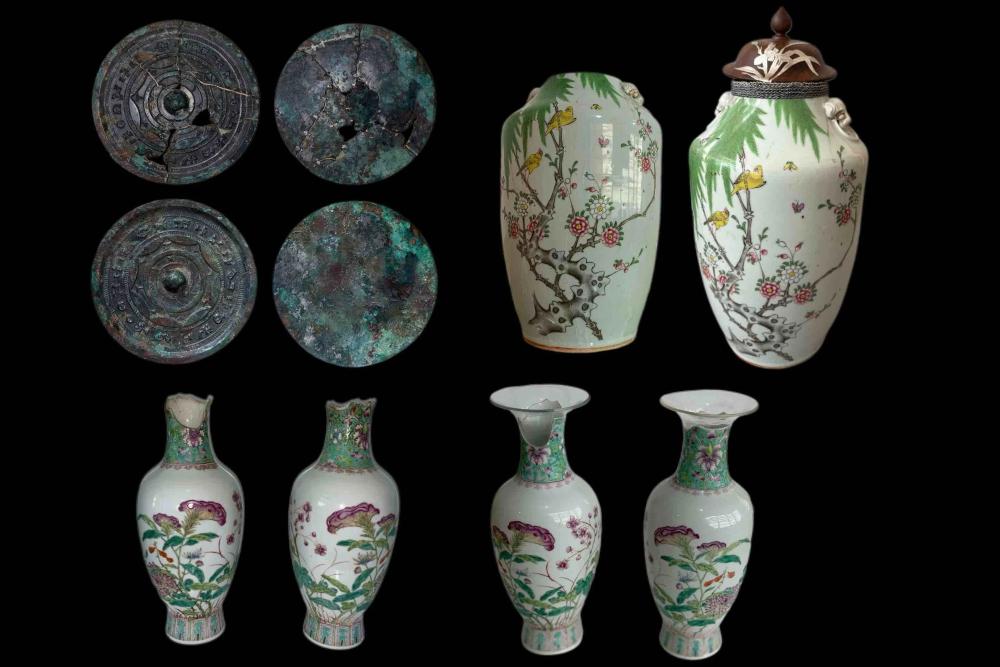 汉代昭明镜及民国粉彩花卉纹瓶组修复