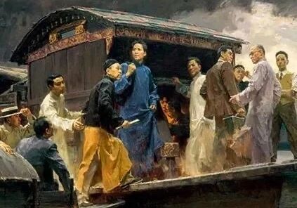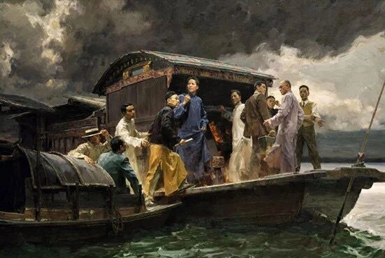 在场景的选择上,究竟是选择上船的场景,还是开完会下船的场景,是两位作者曾纠结的问题。“当时有专家认为,登船时会议还没开完,和“启航”这一主题不太匹配。”画作作者何红舟介绍,为了更好体现“启航”这一主题的启示、中共一大代表的决心信念,他们最终还是选择了上船的场景。